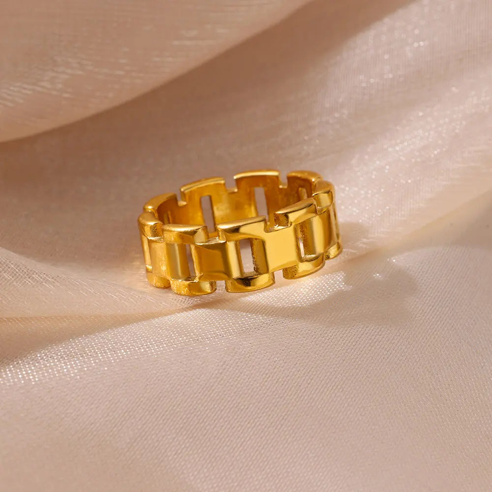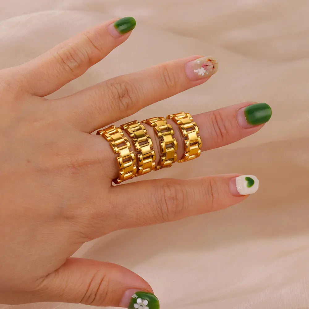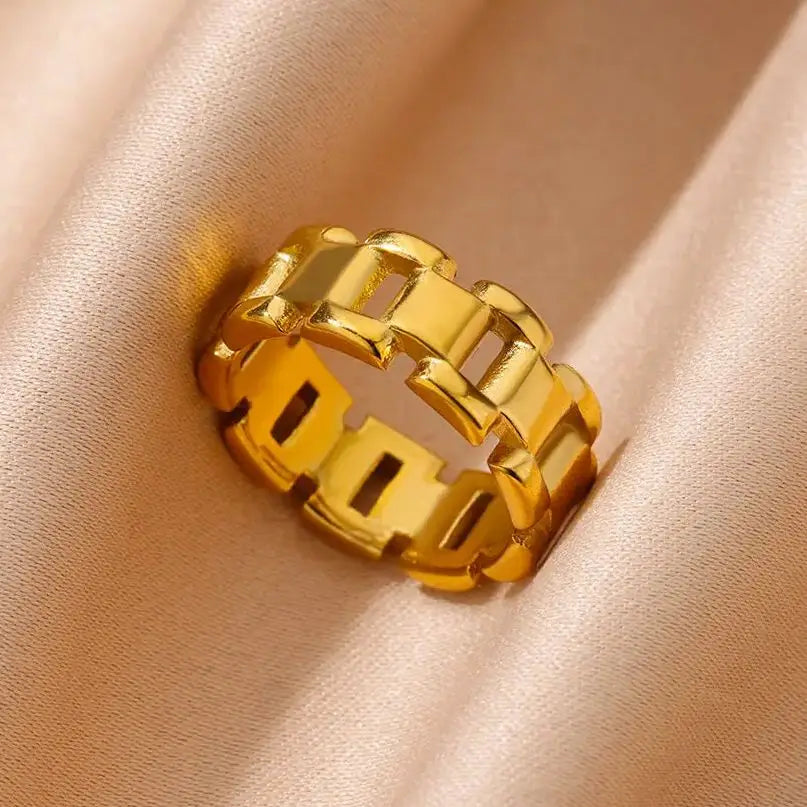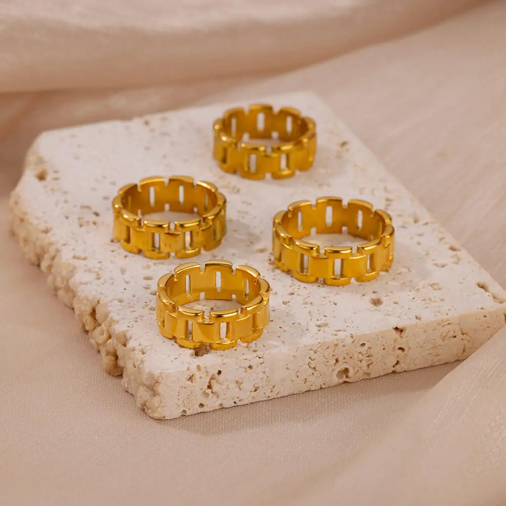 Chain Design Stainless Steel Rings for Women Gold Color Aesthetic Designer Jewelry Wedding Couple Ring Minimalist Jewelry anillo